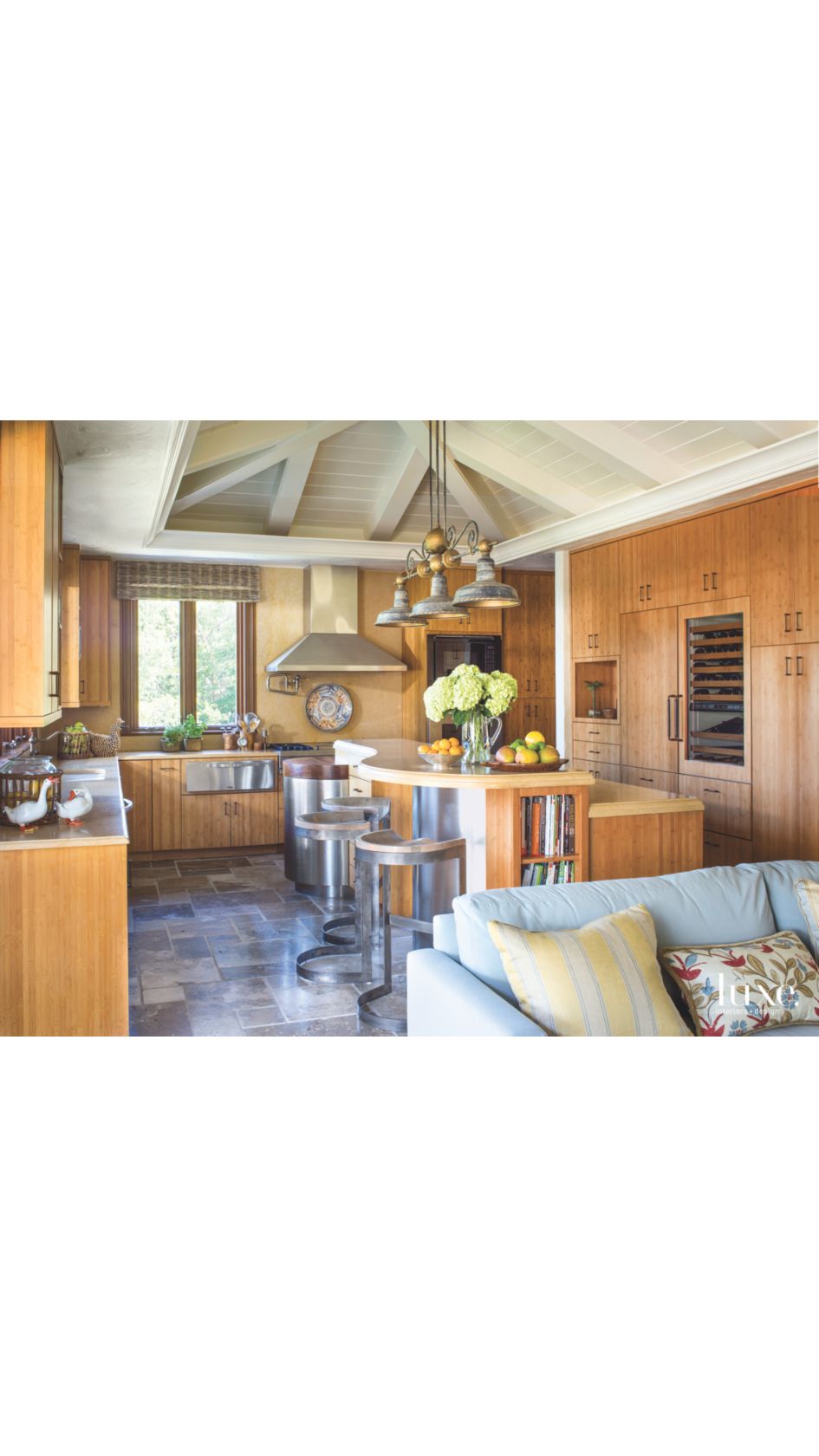 Simple Upgraded Wooden Kitchen With High Ceiling And Steel